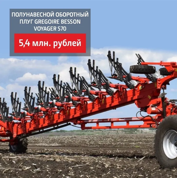 Время покупать сельхозтехнику выгодно. Полунавесной оборотный плуг Gregoire Besson Voyager S70 (8 корп.) всего за 5,4 млн. руб. Успевайте приобрести надежное европейское оборудование!