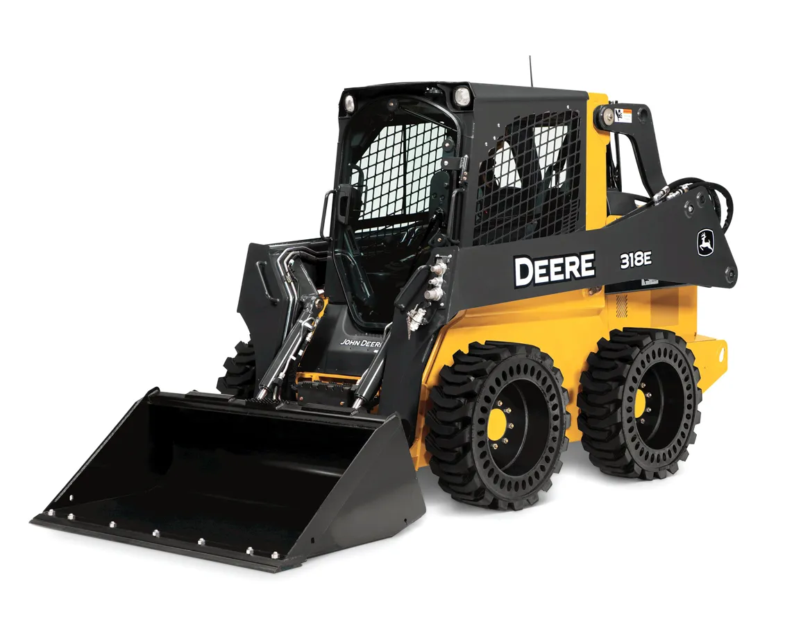 Эксплуатационная масса новых погрузчиков John Deere 318Е и 326Е составляет 3178 кг и 3723 кг, номинальная грузоподъемность - 885 кг и 1221, опрокидывающая нагрузка - 1771 кг и 2443 кг, вырывное усилие на кромке ковша – 2724 кг и 3519 кг, полезная мощность – 66 л.с. и 71 л.с. при 2500 об/мин, соответственно. Траектория подъема груза – вертикальная. В стандартной комплектации 318Е оснащается рычагами для управления ходом, педалями для управления погрузочной частью и ковшом, а 326Е – джойстиками.