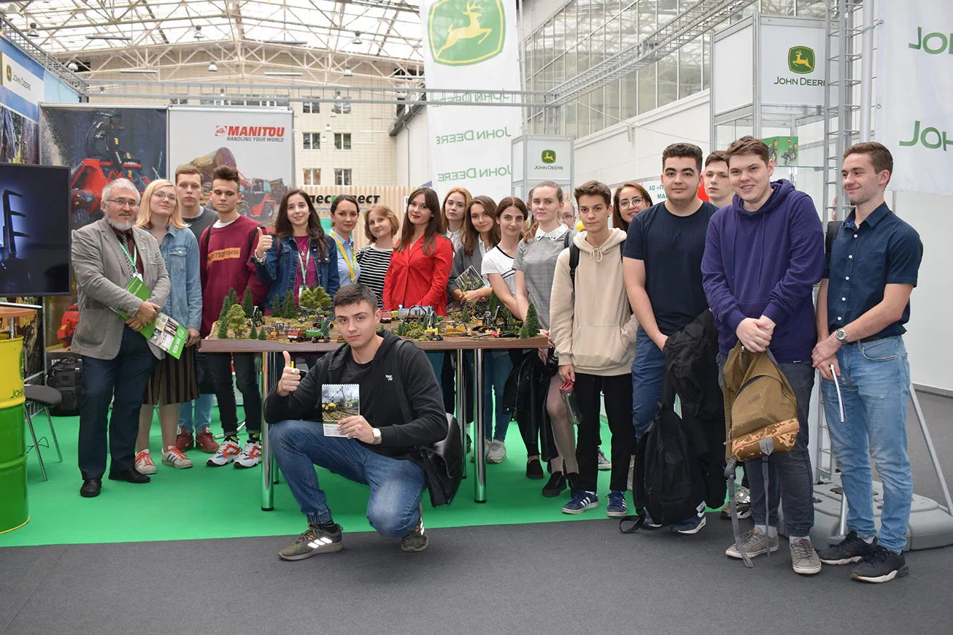 Безусловный интерес гостей мероприятия вызвал макет в масштабе 1:50, на котором мы показали виды работ, которые может выполнять лесозаготовительная и дорожно-строительная техника John Deere, оборудование для лесовосстановления Bracke Forest, погрузочно-разгрузочное оборудование Rotobec.